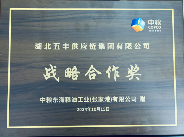 省糧油進(jìn)出口集團(tuán)旗下五豐公司榮獲中糧集團(tuán)“戰(zhàn)略合作獎”